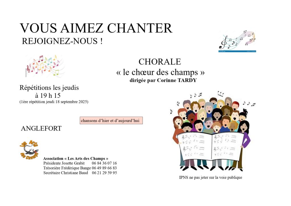 VOUS AIMEZ CHANTER! REJOIGNEZ LA CHORALE  » LE CHŒUR DES CHAMPS »
