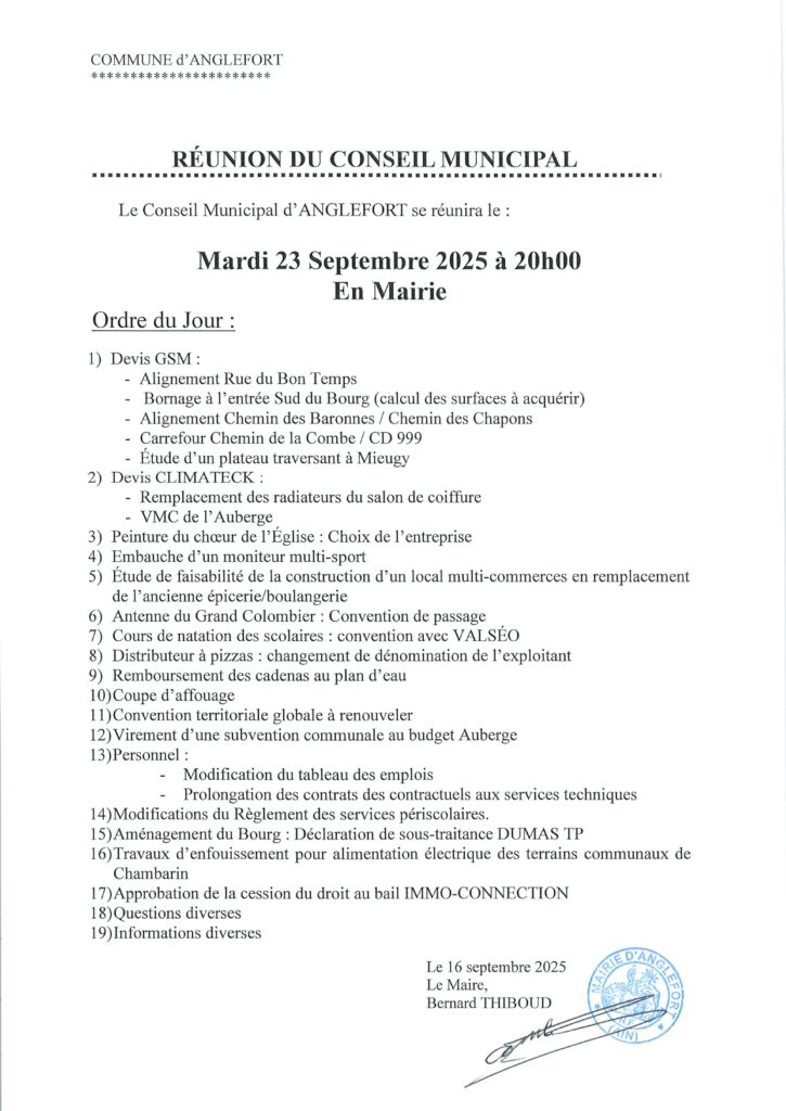 CONSEIL MUNICIPAL : Le Mardi 23 Septembre 2025