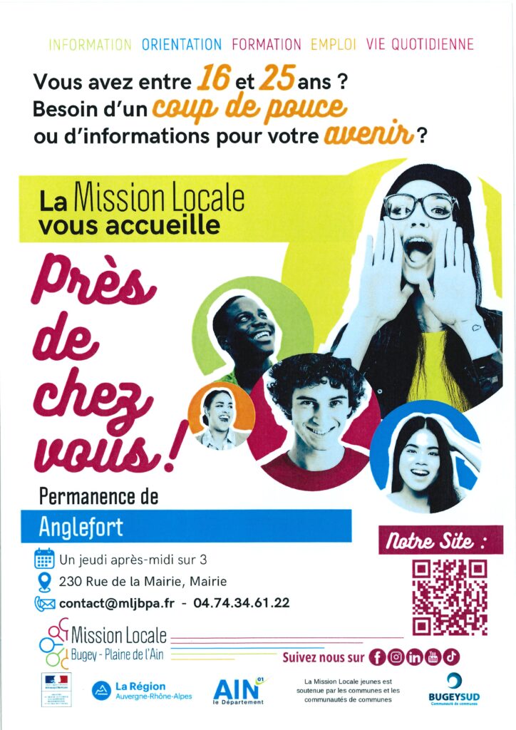 Elle accueillent les jeunes du secteur (Anglefort, Corbonod et Seyssel (Ain)) lors de permanences à la Mairie d’Anglefort, de 14h à 17h00 les :