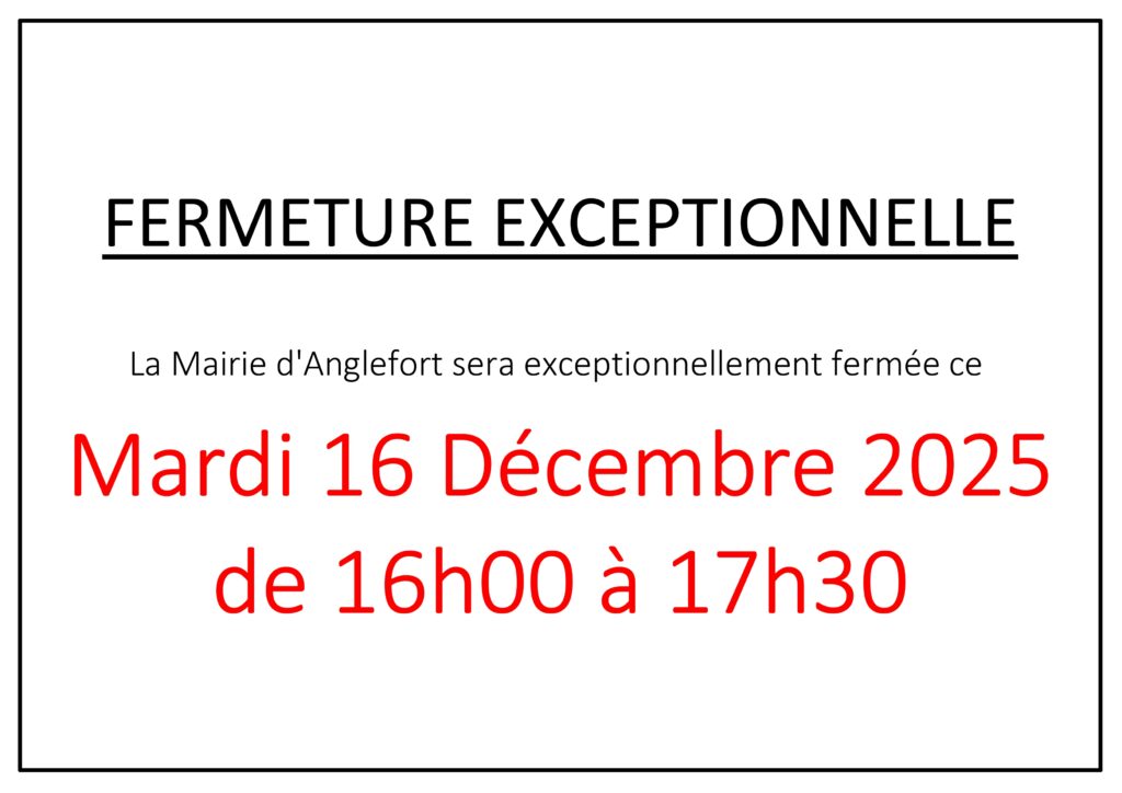 Mairie Fermée : Le 16/12 de 16h00 à 17h30