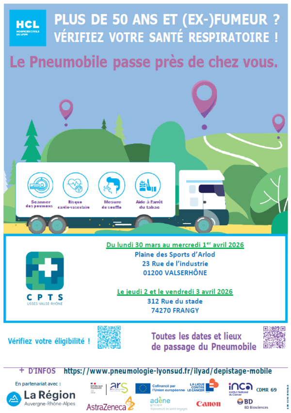 Dépistage du cancer du poumon : présence du pneumobile des Hospices Civils de Lyon à Frangy Haute Savoie les 2 et 3 avril 2026